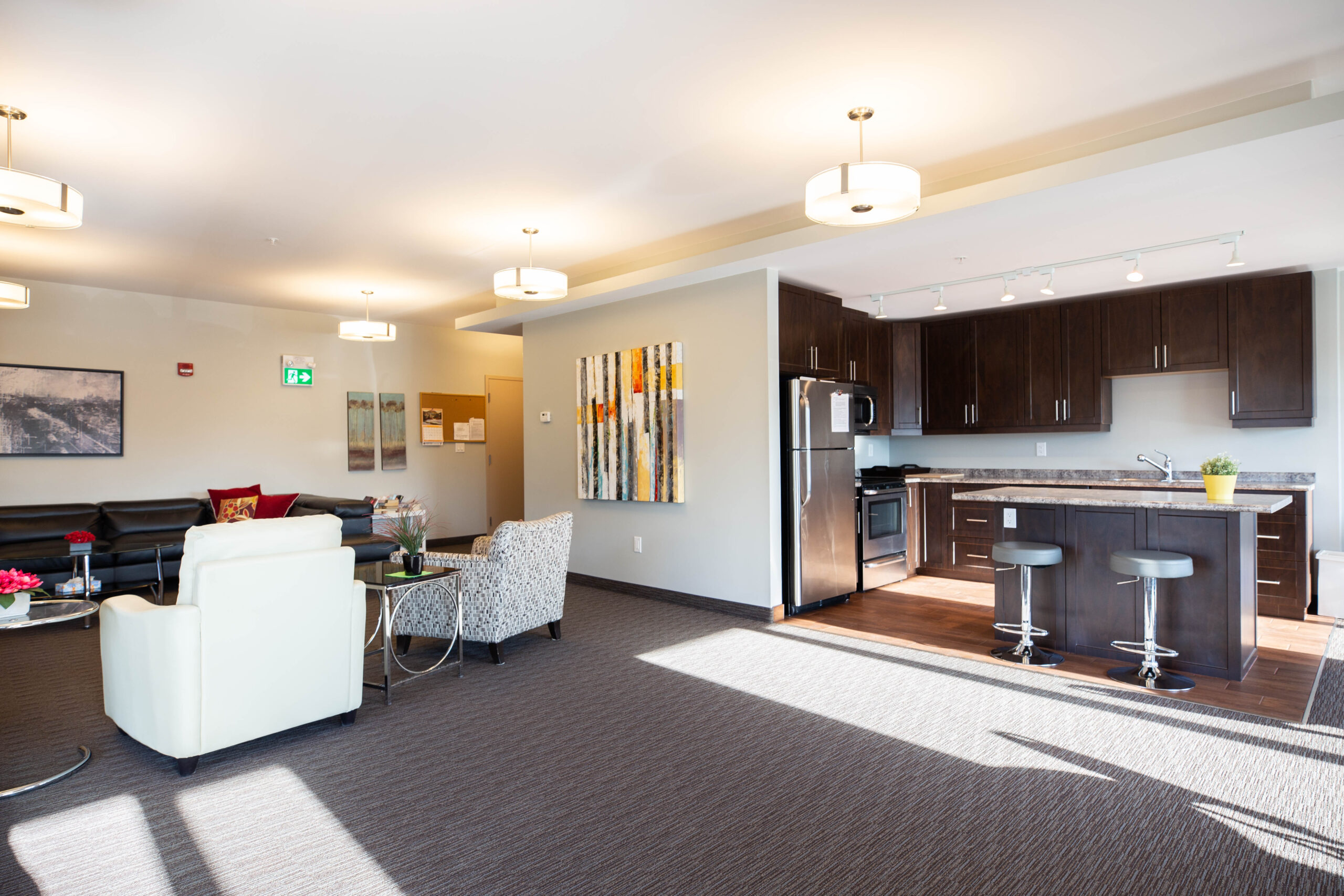 Residents benefit from a secure entry system, bike storage, extra storage units, powered surface parking, and the option for indoor heated parking. Additional amenities include a convenient car wash station at 350 Lodge and an onsite gym at 360 Lodge. A resident lounge and outdoor terraces provide welcoming spaces to relax and connect.